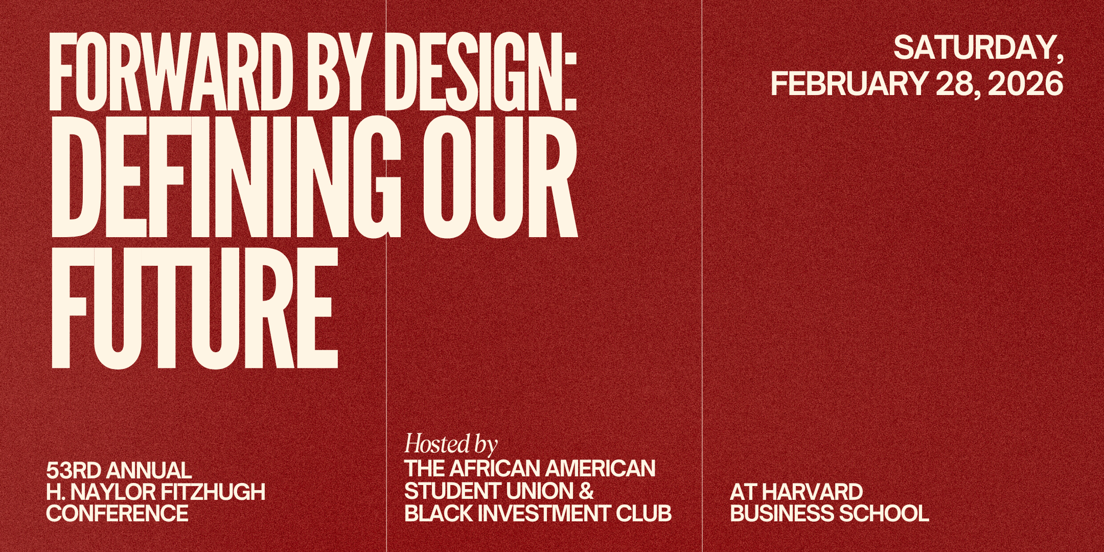 Founded in 1973, the H. Naylor Fitzhugh Conference, hosted by the African American Student Union (AASU) and the Black Investment Club (BIC) at Harvard Business School, is an annual gathering honoring Black leadership and achievement. We welcome students of all backgrounds who are inspired by prominent underrepresented voices shaping business and culture today. Each year, the conference brings together current HBS students, peers from other MBA programs, young professionals, and alumni for a full day of dynamic panels, thought-provoking keynote conversations, the HBS Black New Venture Competition (which has awarded over $300K in non-dilutive capital to early-stage founders), and a post-conference networking reception and soiree.